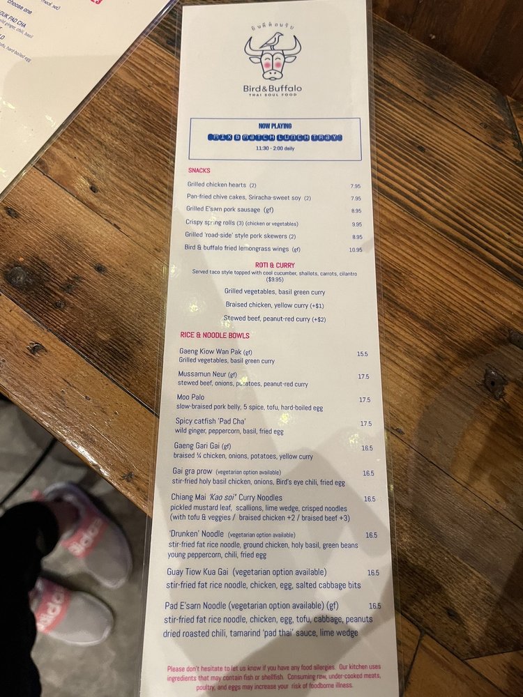 Bird & Buffalo Menu
